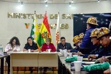 La Paz, 8 de enero de 2026 (UC011/MSyD).- La Ministra de Salud y Deportes, Marcela Flores Zambrana, junto con representantes de la Federación Nacional de Cooperativas Mineras (FENCOMIN) y sus delegados departamentales, sostuvieron una reunión para conocer sus requerimientos respecto al área de salud del sector minero.