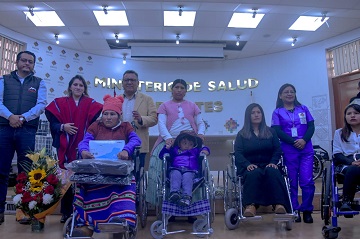 La Paz, 16 de mayo 2024 (UC/MSyD).– En un acto emotivo, la viceministra de Gestión del Sistema de Salud a. i., Mariana Ramírez, entregó este jueves 163 Dispositivos y Tecnologías de Apoyo a personas con discapacidad de escasos recursos del departamento de La Paz, valuados en Bs 65.440, los cuales contribuirán a una mejor calidad de vida de los beneficiarios y sus familias.