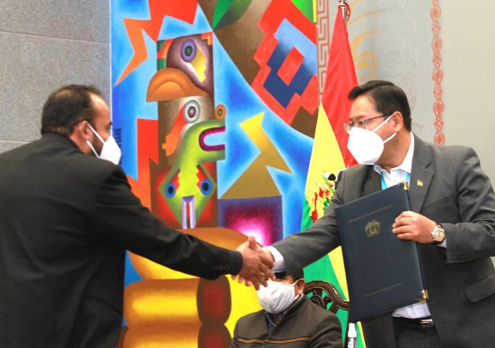 La firma de contrato se realizó en Casa Grande del Pueblo, con la presencia del Presidente Luis Arce Catacora, el vicepresidente, David Choquehuanca, la viceministra de Promoción, Vigilancia Epidemiológica y Medicina Tradicional, María Renee Castro; además de ministros y viceministros, entre otros.