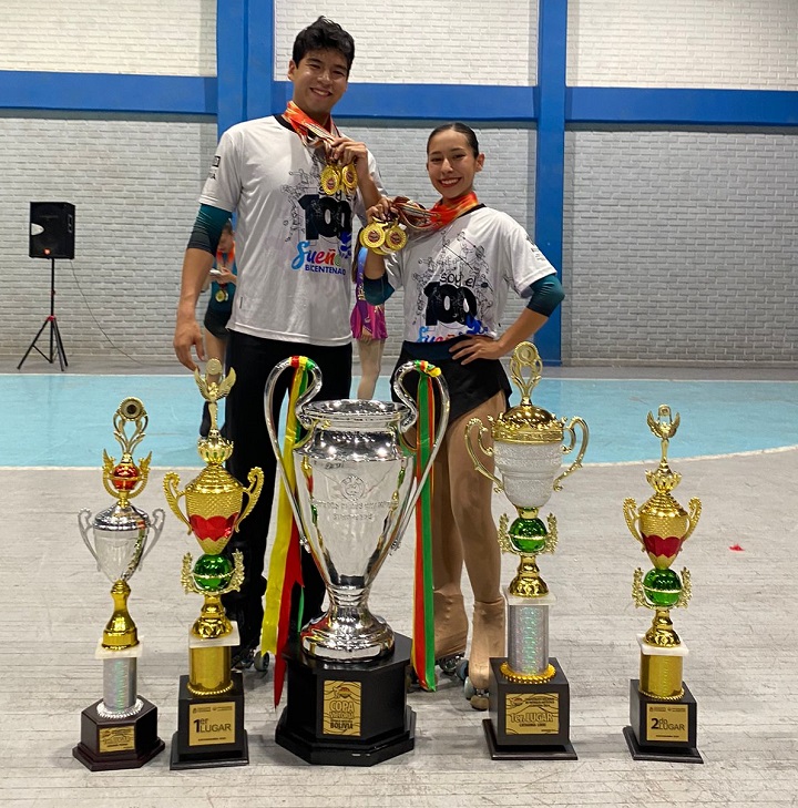 Cochabamba, 25 de noviembre 2024 (UCOM/MSyD).- Los patinadores Anahí Saavedra y Paulo Andia, becarios del Sueño Bicentenario, cosecharon cada uno siete medallas de oro en el Campeonato Nacional Clausura de patinaje Artístico Interclubes que se realizó en Cochabamba el fin de semana.