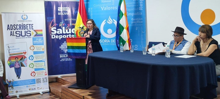 La Paz, 4 de noviembre de 2025 (UC/MSyD).- Con el objetivo de mejorar el acceso a la salud de la población LGBTIQ+ el Ministerio de Salud y Deportes y la Defensoría del Pueblo lanzaron la campaña nacional “Salud, un derecho sin discriminación” para que este sector vulnerable allane el camino para su adscripción al Sistema Único de Salud (SUS) sin discriminación.