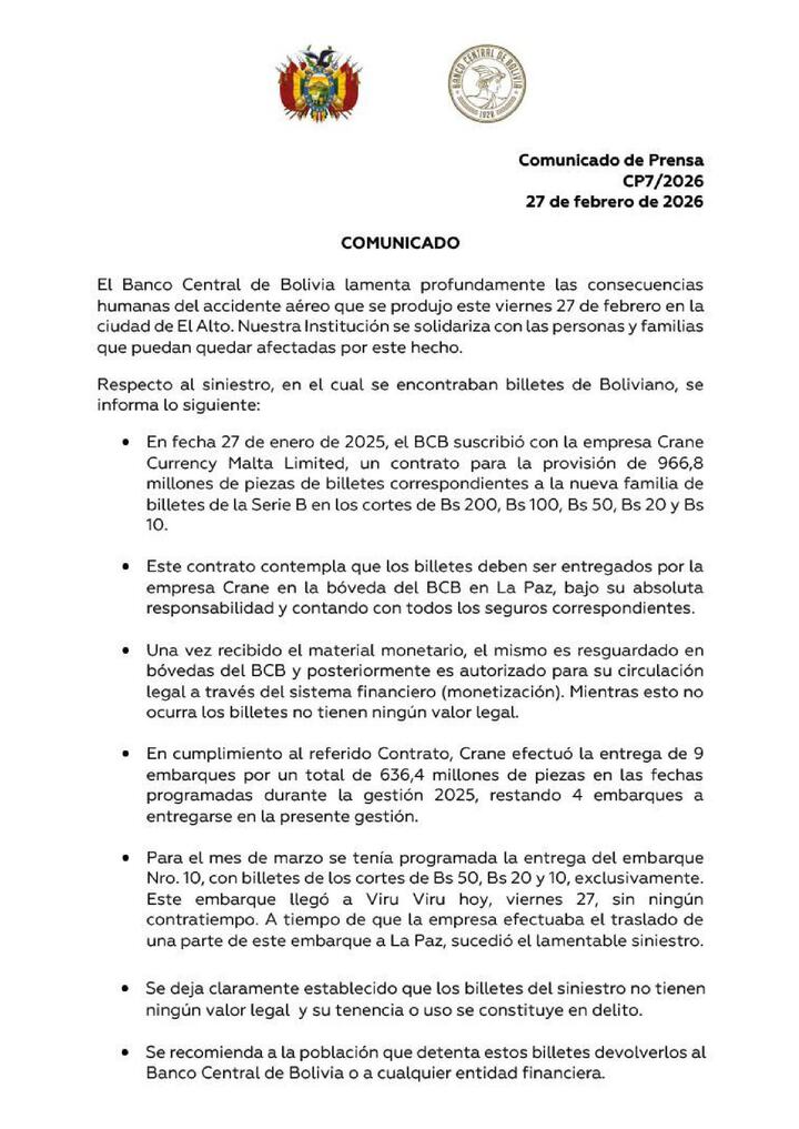 Artículo anterior: BCB INHABILITA LOS CORTES DE BS 10, BS 20 Y BS 50 DE LA SERIE B DE LA NUEVA FAMILIA DE BILLETES DE BOLIVIANO