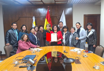 La Paz, 28 de noviembre 2025 (UC/MSyD).- Tras una reunión fraterna, la presidente del Colegio Médico Departamental de Cochabamba, María del Carmen Rojas Rocha, entregó un reconocimiento a la ministra de Salud y Deportes, Marcela Flores Zambrana, por su aporte y apoyo dada a la comunidad médica cochabambina; además del compromiso adquirido con la región.
