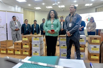 La Paz, 19 de enero de 2026. (MSD/UCOM/020). - El presidente del Estado, Rodrigo Paz Pereira, junto a la ministra de Salud y Deportes, Marcela Flores Zambrana, entregaron equipamiento de laboratorio, audiológico y tecnología de punta, con el objetivo de fortalecer los centros de salud, hospitales y laboratorios con una inversión de $us. 23.125.248 en beneficio de la población boliviana