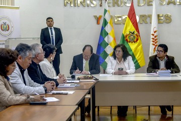 La Paz, 19 de febrero de 2026 (MSD/UCOM/034).- La ministra de Salud y Deportes, Marcela Flores Zambrana, sostuvo una reunión con la rectora de la Universidad Mayor de San Andrés, Dra. María Eugenia García Moreno, acompañada de su equipo técnico que presentó una propuesta institucional para esta cartera de estado.